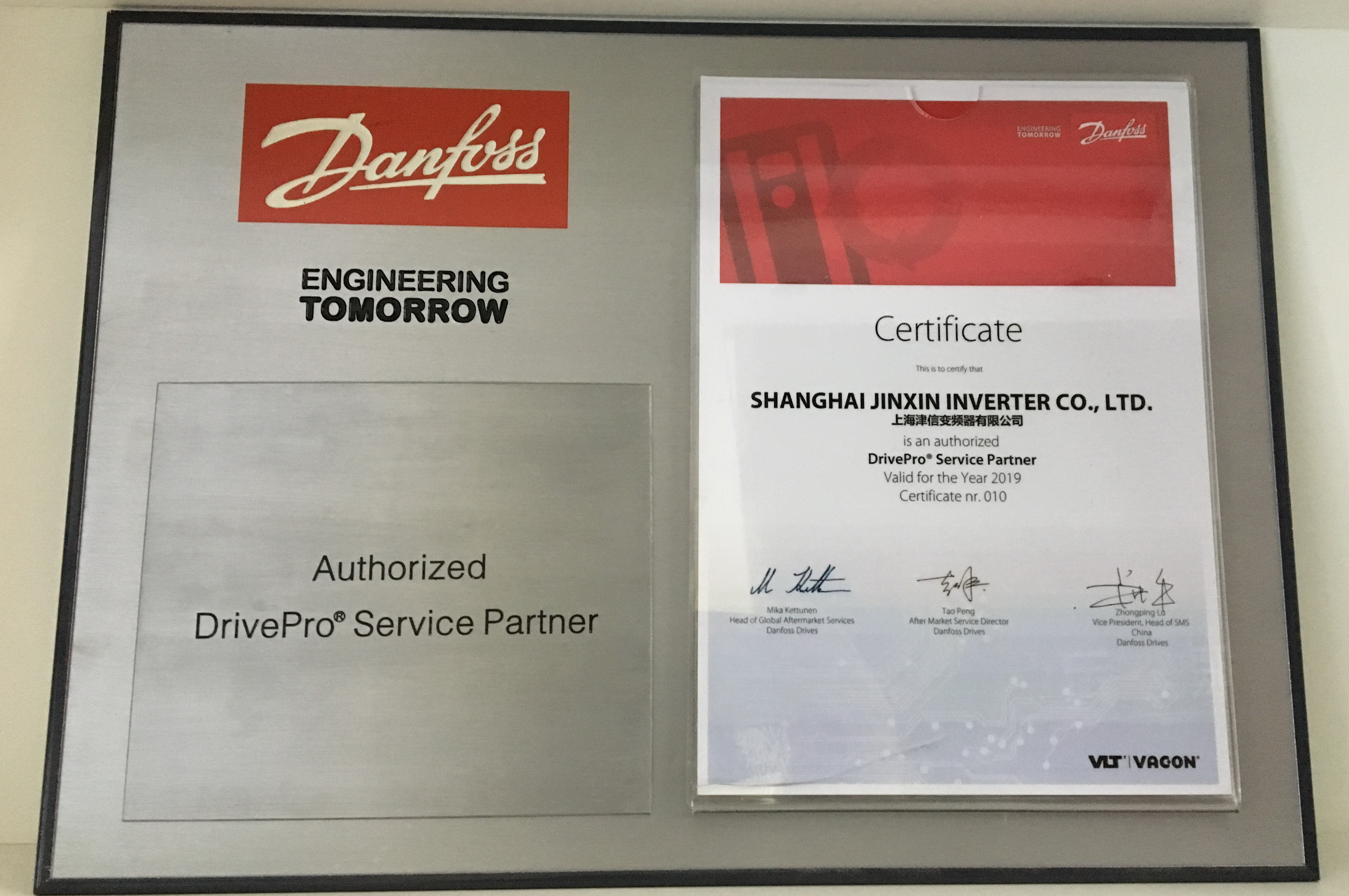 上海津信是全球第十家丹佛斯授權“DrivePro®”服務商。