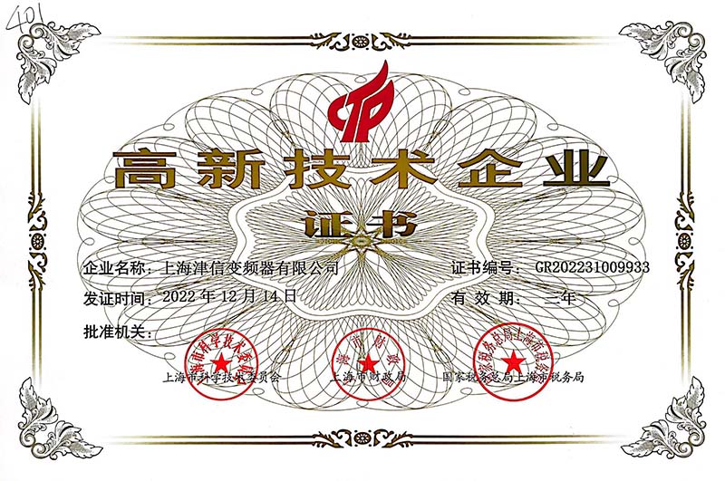 從2016年起,上海津信連續多年通過了上海市科學技術委員會、上海市財政局、上海市國家稅務局和上海市地方稅務局等四部門的聯合評審驗收,被認定為“國家高新技術企業”。